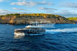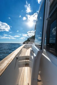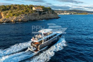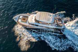 Diese MY ist mit den MAN i6 (D26) Dieselmotoren mit jeweils 850 PS und Wellenantrieb sowie mit einem proportionalen Bug- und Heckstrahler ausgestattet. Der Manöver-Joystick, verfügbar auf allen drei Stationen, macht das An- und Ablegen zum Kinderspiel. Bei einer angenehmen Reisegeschwindigkeit um 16 kn laufen die Motoren bei rund 1.700 U/min und einem kombinierten Verbrauch von lediglich 160 l/ h, die Maximalgeschwindigkeit liegt bei ca. 26kn zu 2.300 U/min.