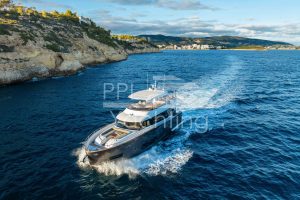 Neuwertige Azimut Magellano 66 aus 2021 / Modell 2022, erster Hand (private Nutzung), polnisch-beflaggt, EU-MwSt. nicht gezahlt (Nettopreis) mit Liegeplatz in Palma de Mallorca.