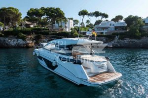 Like new Beneteau Gran Turismo 45 from 2023, first owner since new, german flag, VAT not paid (net sale possible) and with impeccable ship documentation and maintenance history. This MY is equipped with Volvo Penta D6-380 diesel engines with Joystick-control as well as a bow thruster making maneuvering in port a breeze. With a cruising speed of around 23kn, the engines run at 2,900 rpm and a combined consumption of approximately 90l/h, the maximum speed is an impressive 30kn at 3,550 rpm.