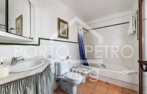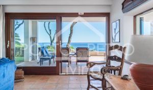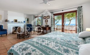 The main house features a spacious master suite with a fireplace, and an elegant en-suite bathroom. Step directly out onto two spacious terraces, the perfect vantage points for enjoying both sunrise and sunset over the sea. This level also hosts two additional en-suite bedrooms, each with stunning sea views and direct access to the main terrace. On the ground level, three additional en-suite bedrooms provide ample space and privacy for guests or extended family. The villa’s living spaces are designed for both relaxation and entertaining. A generous living room with a fireplace opens onto a beautifully landscaped mediterranean garden, while an expansive 80 m² swimming pool lies just steps from the sea, offering an idyllic setting for outdoor living. A cosy yet refined dining room flows directly onto a covered terrace, ideal for al fresco meals. The fully equipped kitchen includes an informal dining area for everyday use. Additional features include a spacious entrance hall, guest toilet, a fully equipped laundry area, and a service room with a private bathroom. Practical amenities such as oil-fired central heating, ceiling fans in every room, double-glazed windows, traditional mallorcan shutters and a double garage ensure year-round comfort and convenience. Importantly, the property benefits from a holiday rental licence for up to 12 guests, making it not only a breathtaking coastal residence but also an attractive investment opportunity.