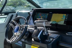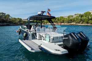 Well-maintained Saxdor – 320 GTO from 2022, privately owned, EU-VAT paid and with impeccable ship documentation and maintenance history. Equipped with twin Mercury V6-225 XL outboard engines as well as a bow thruster, maneuvering in port becomes a push-over. With a cruising speed of around 23 kn the engines run at 4,100 rpm and a combined consumption of only 80 l/h, the top speed is an impressive 36 kn at 5,750 rpm.